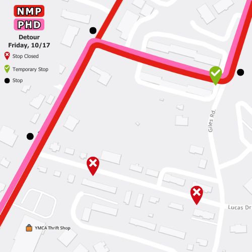 On Friday, 10/17, NMP and PHD will detour due to construction on Lucas Drive.