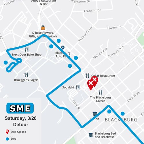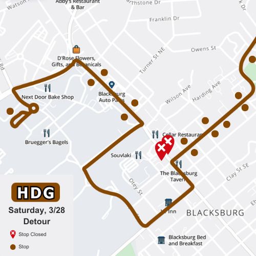 HDG and SME will detour on Saturday, 3/28 from 3:15 PM to 4:45 PM due to demonstrations on Main Street. BT will plan to resume normal route service at 4:45 PM, or as soon as the streets reopen. Expect delays during and immediately after the events.